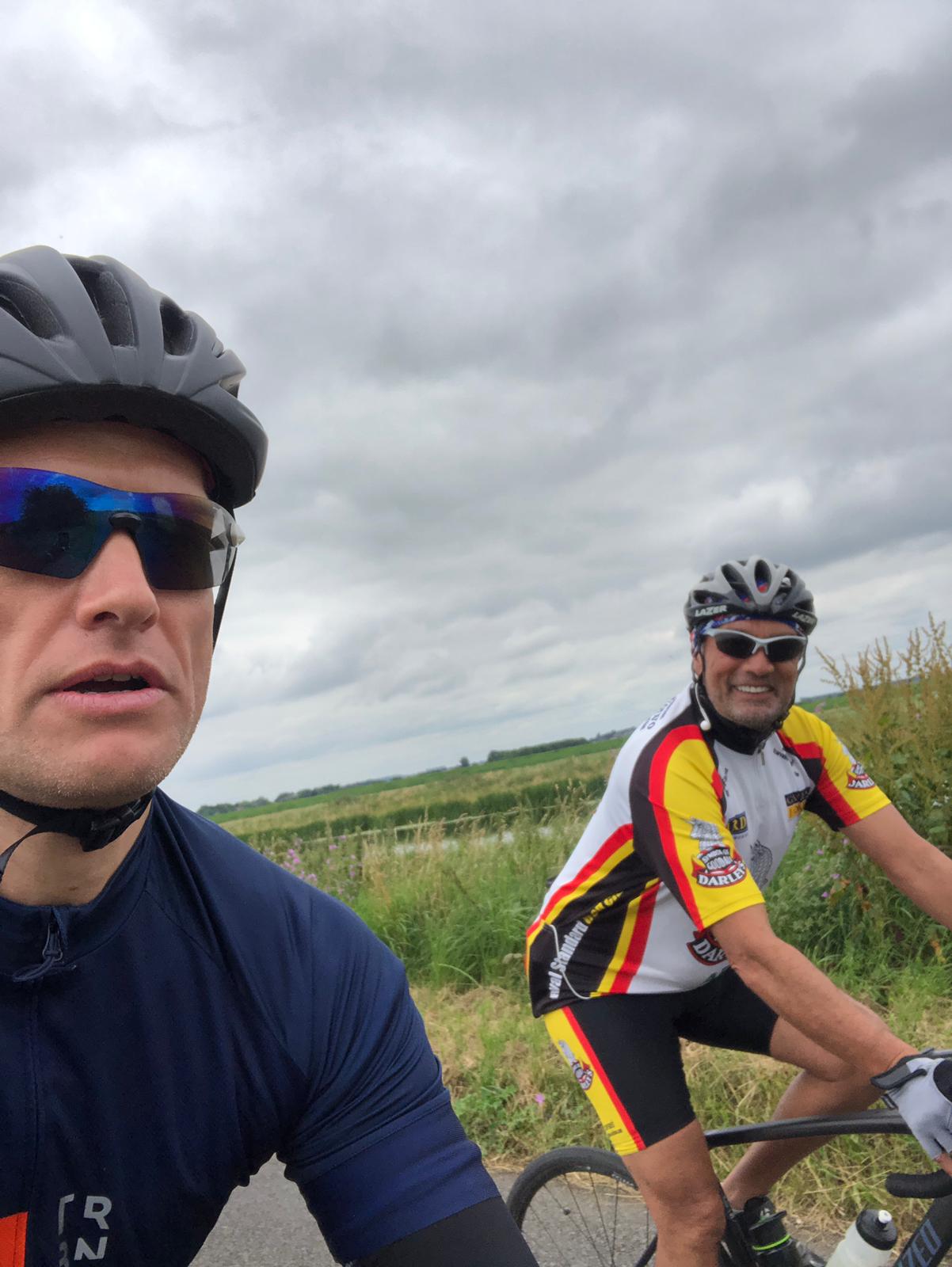 So today started a little flat and ended on a high. The boys are all doing well. Great camaraderie and a willingness to help each other which is what its all about. Special mention for Rick who didn’t know anybody but Wrightie yesterday but now is real member of the group. No other mentions tonight, not because there weren’t some stars, Bradley going on a breakaway (“Because it was so flat”), John (Is all this coffee free at Weatherspoons) Mark (telling those who couldn’t see the red light to go NOW), Dominic for having a Gin Sling at Weatherspoons (it doesn’t cost a lot), Steve for putting his leg warmers on (I’m cold). And of course Wrightie for falling for all the wind ups – all day.